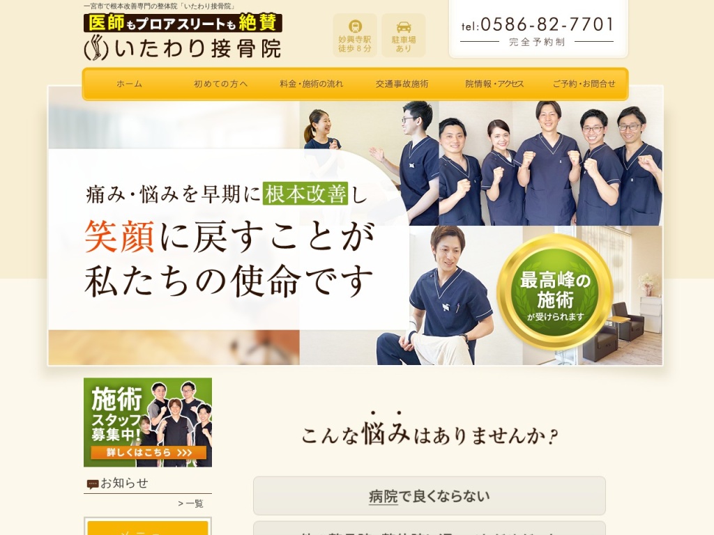 | いたわり接骨院 | 医療知識を持つインストラクターによる指導 | 腰痛改善ヨガ療法(個別対応) | 8,000円〜 |